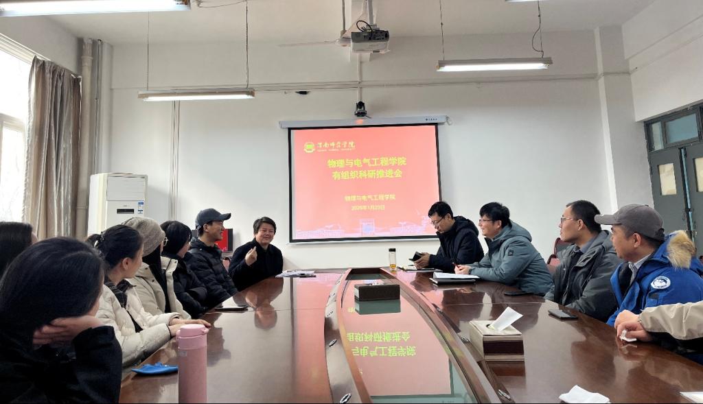 为落实学校关于加强科研统筹布局和提升科技创新能力的要求,推进学院有组织科研工作,1月23日上午,物理与电气工程学院召开了科研推进会。学院党总支书记袁卫、院长秦玉伟、副院长何冰及新进博士教师参加会议。会议由何冰主持。